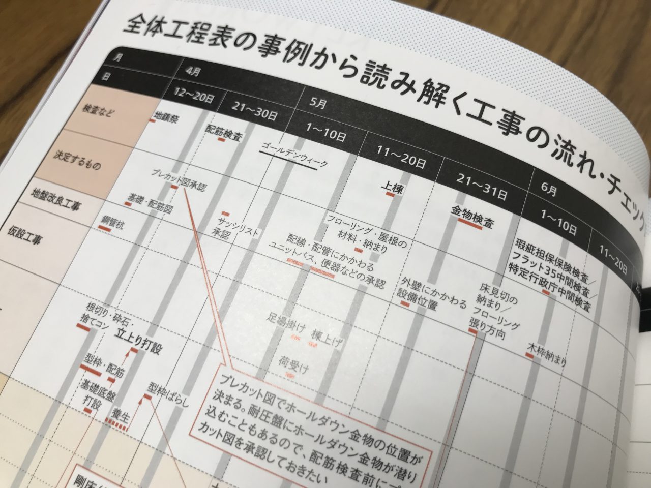 こちら建築知識は、どちらかと言うと設計や施工の実務者が読むような雑誌であり、我々も実際よく拝読させて頂いている雑誌なのですが、今回は施工側から見た設計施工監理業務に対する部分についての意見や、各工程での現場写真についての取材のご依頼を受け、ご協力させて頂きました。